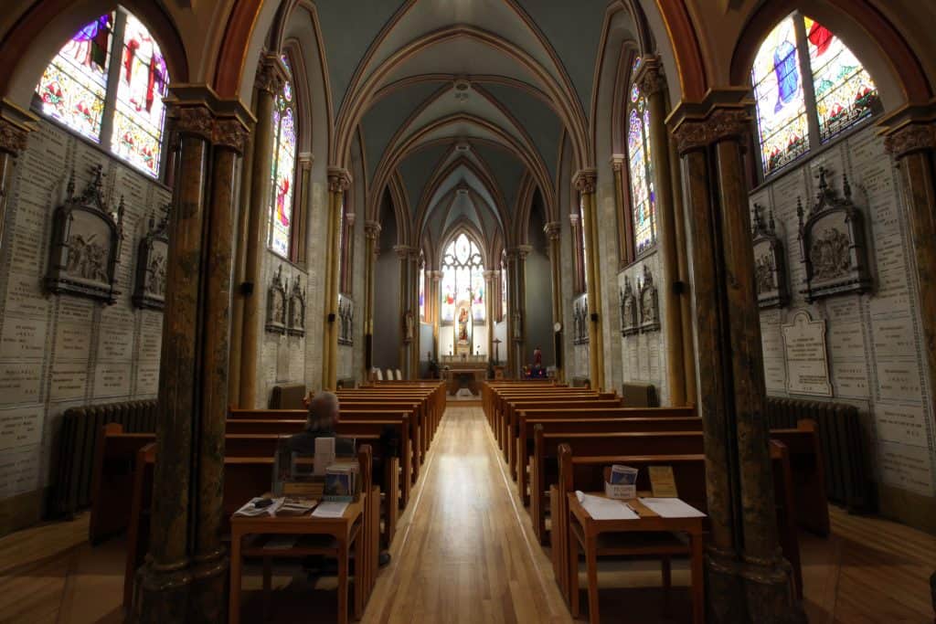 Voir plusPhotos de Pascal Huot Le sanctuaire de Notre-Dame du Sacré-Cœur, situé en retrait de la rue Sainte-Ursule dans le Vieux-Québec, est l’œuvre des Missionnaires du Sacré-Cœur. Construit en 1909-1910 sous