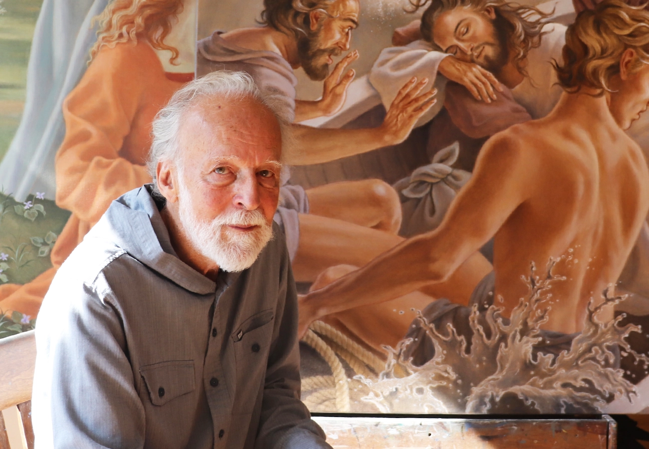 C’est toutefois au Québec, alors qu’il contemplait un paysage bouleversant de beauté, qu’il a vécu une sorte d’Épiphanie, ou un début de conversion : il a compris que toutes ces grâces de la nature communiaient au même Amour, le Créateur. Il s’est mis à peindre des paysages et des personnages en harmonie avec cette nature – à tel point qu’on l’a même déjà qualifié de « peintre écologiste ».
