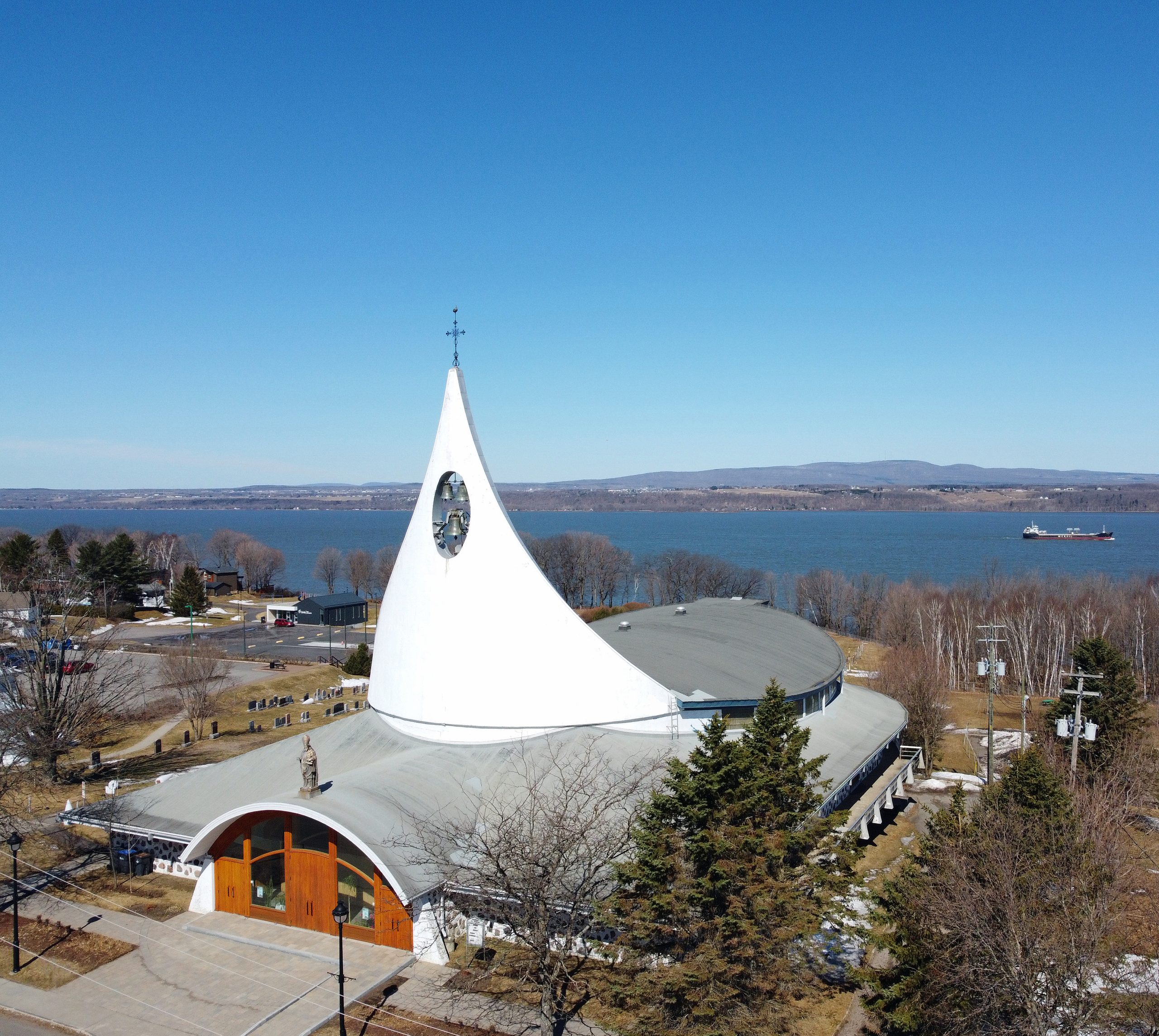 Le nouveau bâtiment se dresse en 1962, en complète rupture avec l’architecture traditionnelle qui caractérise le village. Son style inusité a tôt fait de soulever les passions chez les paroissiens. Son audace, saluée par certains, est décriée vertement par d’autres ! Le bâtiment religieux est d’ailleurs immortalisé dans Paul à Québec (2009), populaire bande dessinée de Michel Rabagliati.