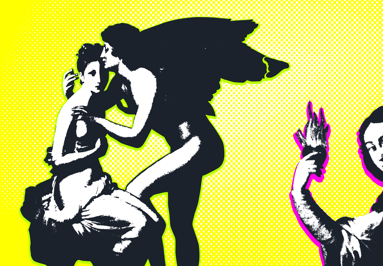 Illustration : Représentation du mythe grec d’Éros (amour-désir) et Psyché (âme) symbolisant l’amour humain accompagnée d’un fragment du tableau « L’allégorie de la charité » par Francisco de Zurbaran.
