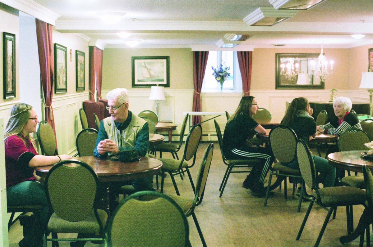 À la salle commune de la résidence pour ainés, je dis un mot d’introduction, pour la forme. Marie-Claire, la responsable des loisirs, m’offre un café. Nous nous installons confortablement et contemplons nos protégés, jeunes et vieux: ils sont en grande conversation et n’ont, de toute évidence, pas besoin de nous.
